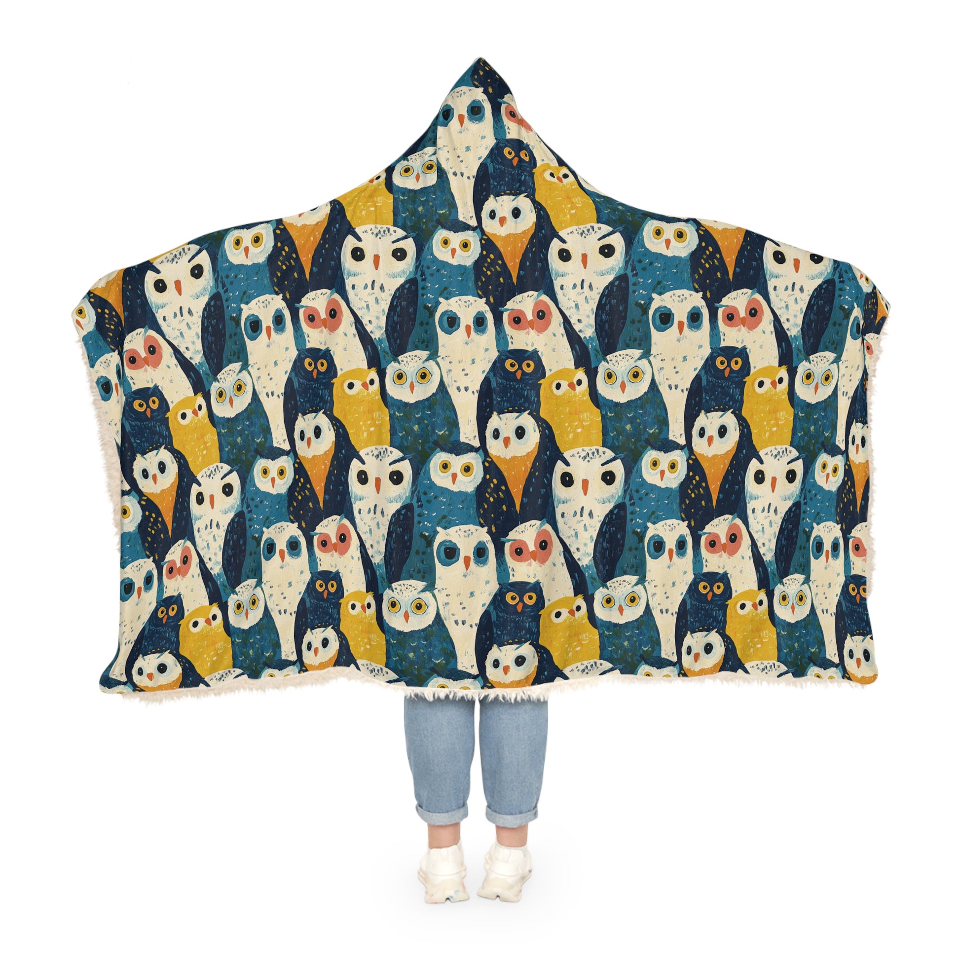 BLUE OWLS LOOKING - Hooded Fleece Blanket